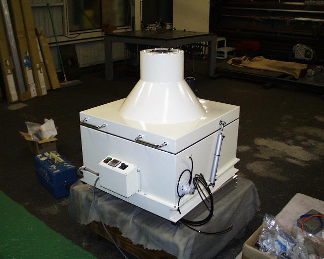 3)底面の排気口よりバキュームポンプ(真空ポンプ:お客様用意の為、この写真には載っていません)で空気中に浮い塵やほこりを吸い出す。