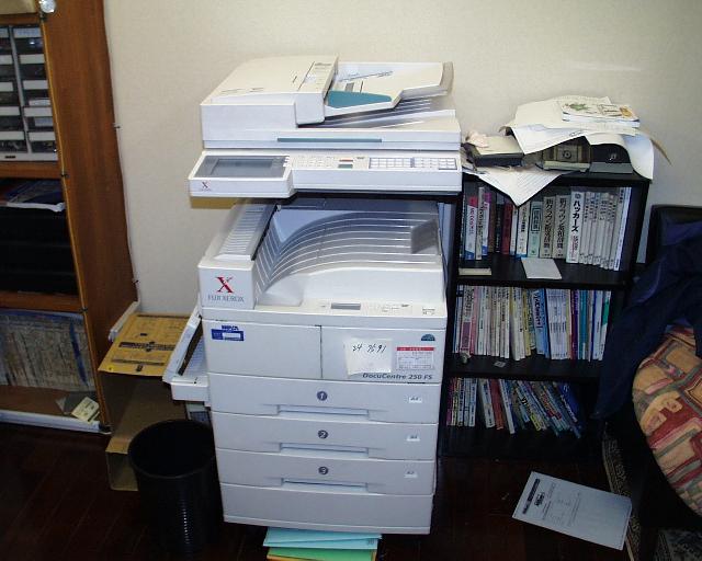 写真4:これが一番贅沢したコピー機,ファックス,プリンター兼イメージスキャナー 富士XEROX DecuCentre 250FS 月々のリース料2万5000円也。でも自動紙送りと高速プリントは慣れてしまうと手放せない... 1分間の処理能力25枚!