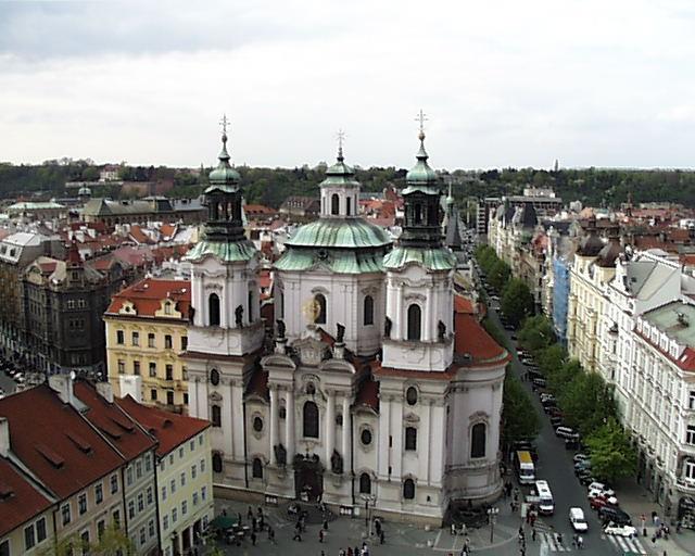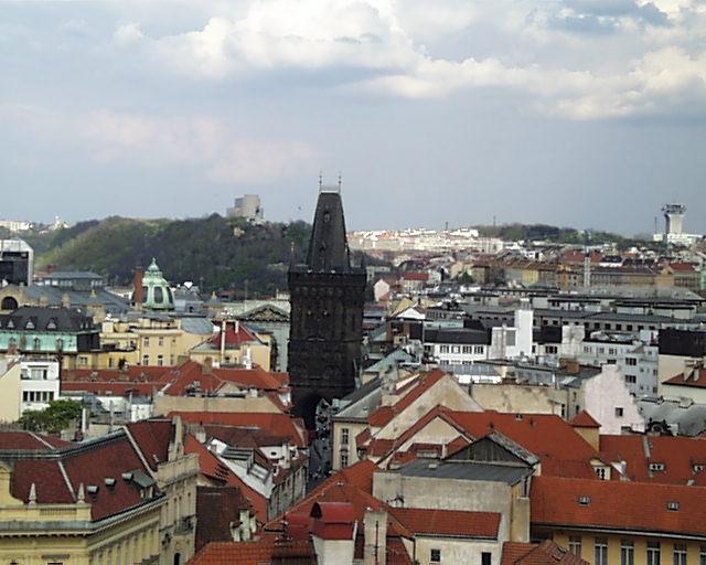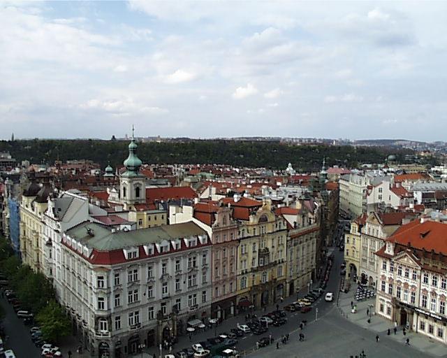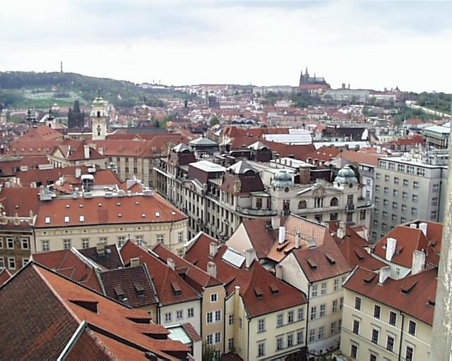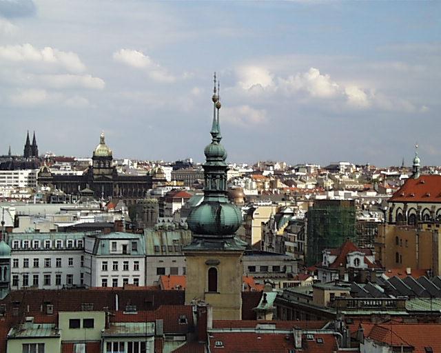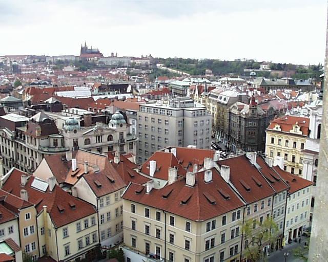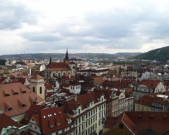 旧市庁舎は30コルナ(約100円)払うと上の展望台まで昇れます。狭いのと結構高いので高所恐怖症の人は注意。下の写真が展望台より見たプラハ市内です。