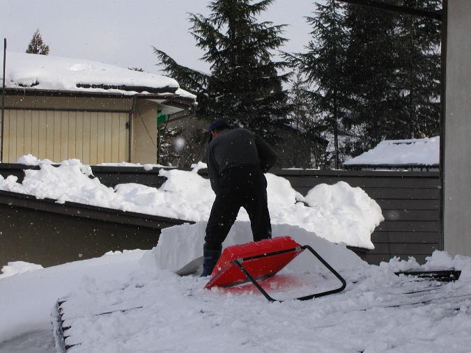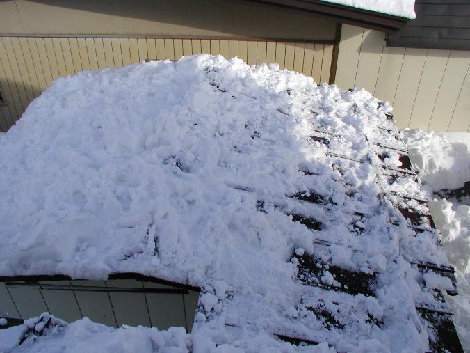 屋根の雪が積もってきたので、親父と二人で雪下ろしをしました。
