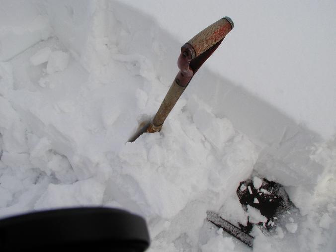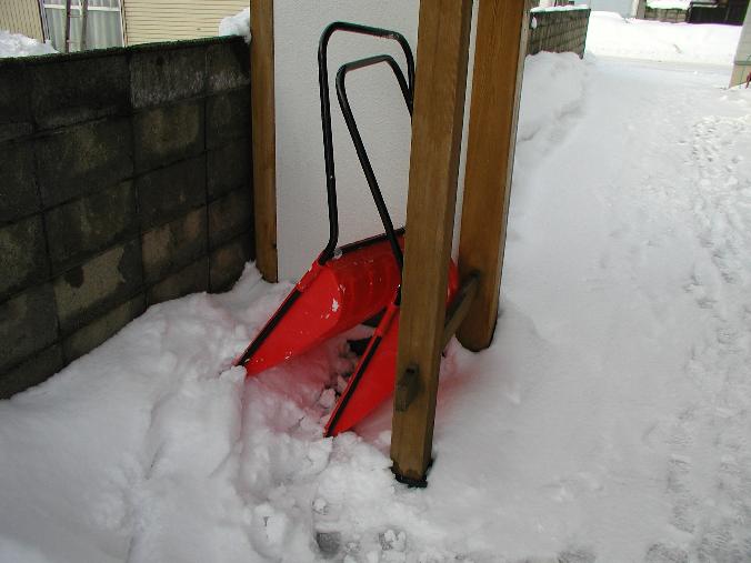 そのため、押したぐらいでは雪下ろしはできません。豆腐状に切り出さなくてはいけません。最上段右側3枚の写真がそうです。角スコップ(通常の先の丸まったスコップでは無く方形のもの)で縦に切り込み入れ、横に切り込み、下からすくって角砂糖の形にして地面に放り投げます。
