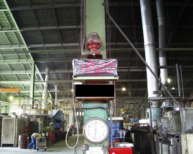 このシステムは炉の温度を測定し、離れた場所に大型表示器を設置して作業者に現在温度を知らせるものです。温度測定器より出力されるアナログ(4-20mA)を送信機内部のA/Dコンバーターでデジタル信号に変換し約80m離れた表示器へ伝送し表示します。