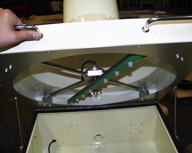 3)底面の排気口よりバキュームポンプ(真空ポンプ:お客様用意の為、この写真には載っていません)で空気中に浮い塵やほこりを吸い出す。